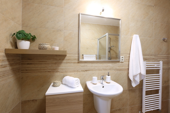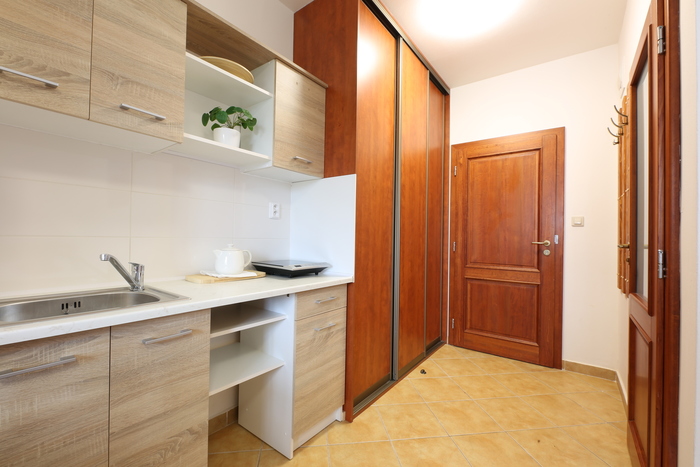 kuchyňka s lednicí a varnou deskou, TV, Wi-Fi, velká šatní skříň, fén